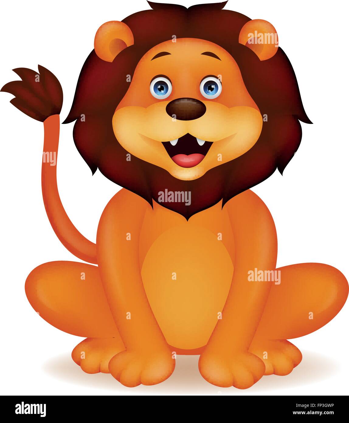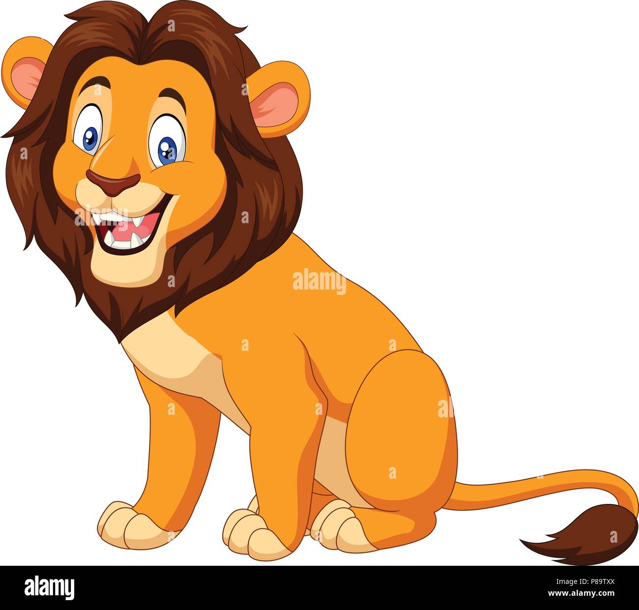 Cartoon feliz león sentado Imagen Vector de stock - Alamy
