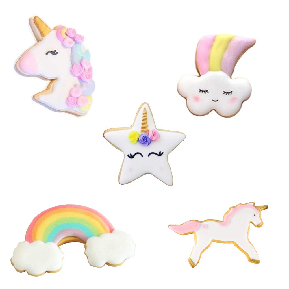 Accessori e utensili per pasticceria stella arcobaleno a forma di unicorno per feste di compleanno dei bambini o feste a tema unicorno Set di 5 formine per biscotti a forma di unicorno